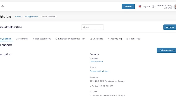 Create your flight in a matter of minutes. Use your defined risks, mitigations, checklists and add all operation and location specific information.