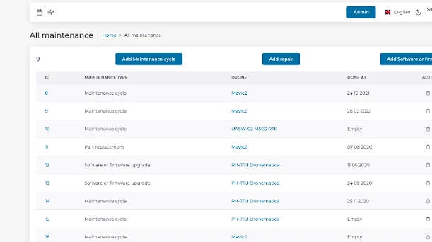 Learn moreKeep track of the maintenance of all your drones, batteries, payloads and more in Dronedeck.