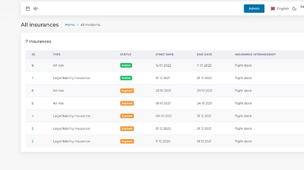 Keep track of all your insurance certificates and instantly see if your drone is insured.