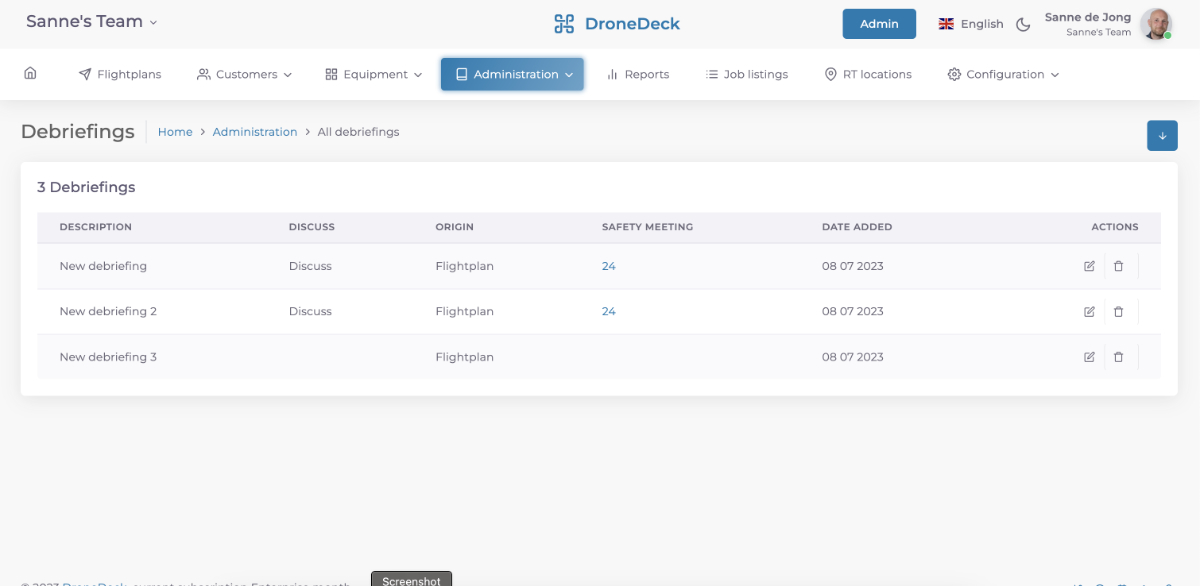 Vliegplannen voor drones maken, loggen van drones, onderhoud van drones bijhouden, training en vaardigheden van de bemanning bijhouden